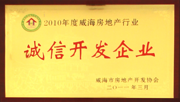 公司連續(xù)八年榮獲威海市“誠信開發(fā)企業(yè)”、“建筑施工誠信企業(yè)”,連續(xù)九年被評為威海市級“守合同重信用企業(yè)”,多次被評為威海市“市級文明單位”、“質(zhì)量管理先進企業(yè)”、 “安全管理先進企業(yè)”,乳山市“優(yōu)秀企業(yè)”、“先進民營企業(yè)”、“納稅明星企業(yè)”,在社會上逐步樹立了誠信、穩(wěn)健的企業(yè)形象。